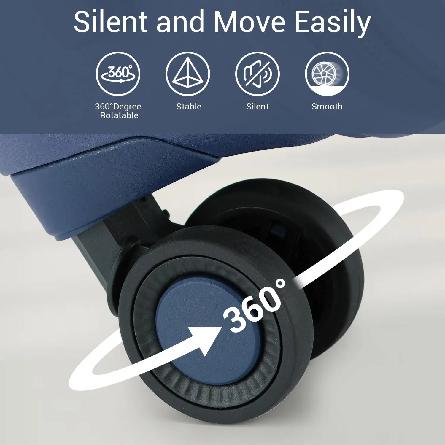 - Silencieux 360° roulettes pivotantes et poignée télescopique en aluminium : Les roulettes pivotantes, fabriquées en matériau TPE souple, glissent en douceur et avec un faible bruit. La poignée télescopique réglable en aluminium assure une manipulation confortable et un contrôle facile de la valise.