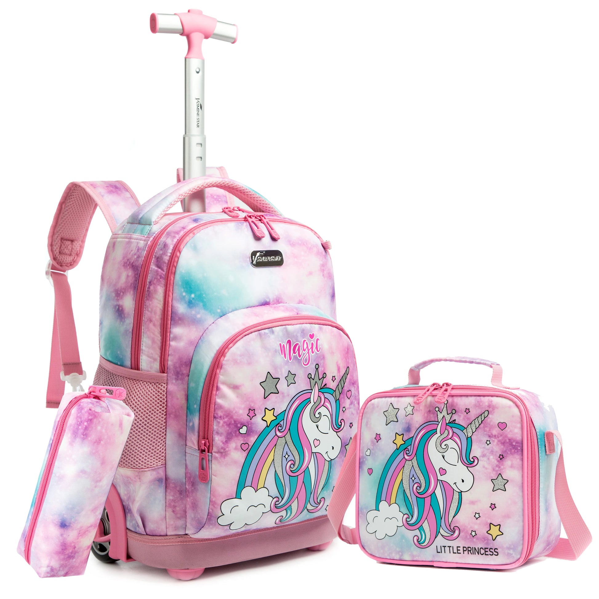 Ce lot de 3 pièces comprend un cartable à roulettes licorne, un sac à bandoulière assorti et un sac à stylos, parfaits pour les élèves du primaire. Facile à transporter grâce à ses roulettes robustes, ce cartable rend les trajets scolaires ou les voyages d'étude plus agréables. Le sac à lunch isotherme garde les repas frais, tandis que le sac à stylos organise tous les outils nécessaires. Pratique et amusant, cet ensemble accompagne parfaitement les enfants dans leurs aventures scolaires.