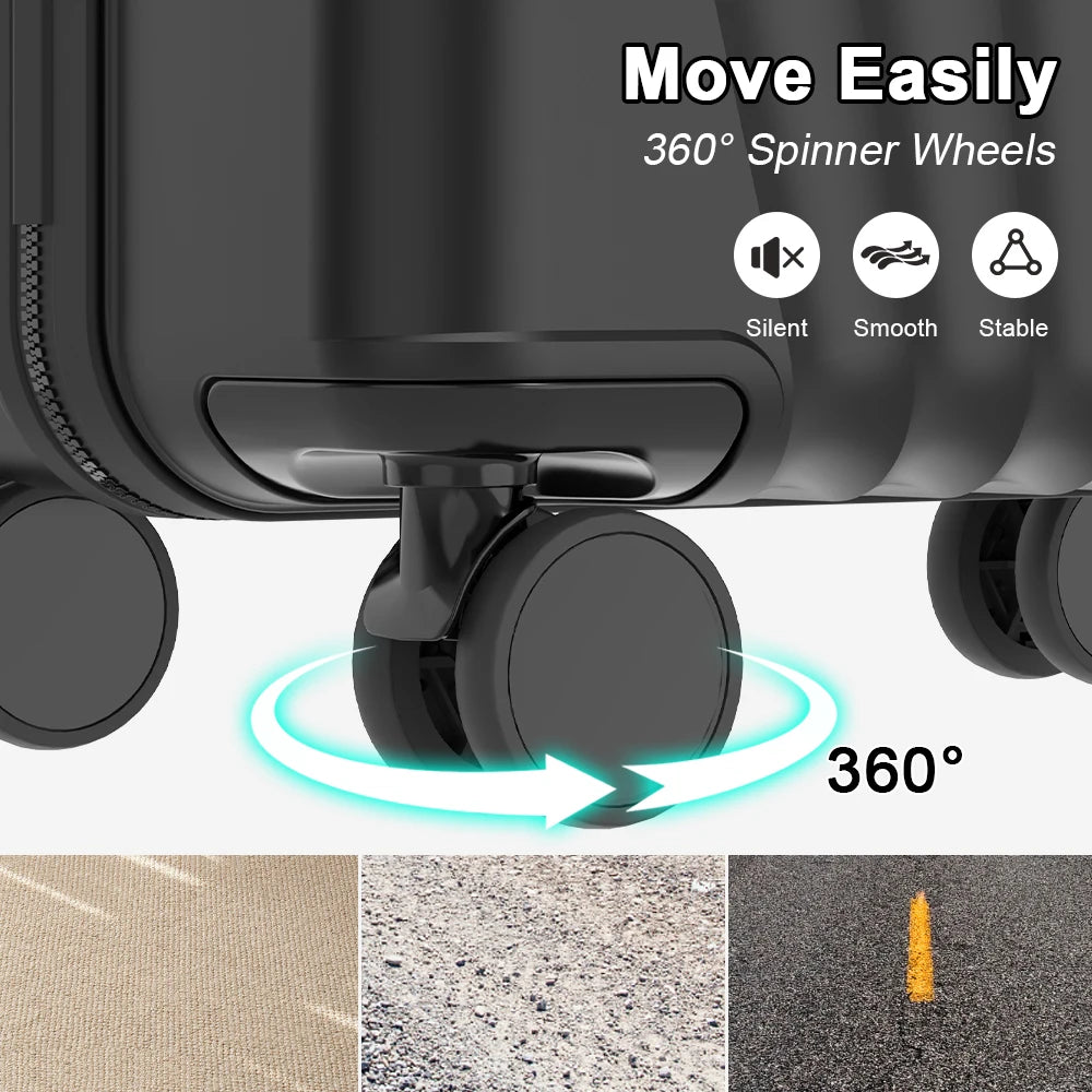 360° douces et silencieuses : La valise est équipée de 360° roulettes silencieuses, flexibles lorsqu'elles sont poussées, lisses lors des virages et produisant un minimum de bruit. Comprend une poignée réglable en aluminium avec plusieurs réglages de hauteur, une prise confortable et une poignée à ressort pour un transport sans effort, rendant les voyages longue distance plus confortables.