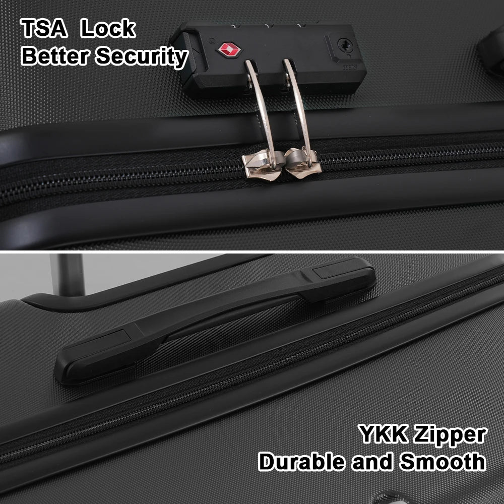 Qualité et sécurité : fabriqué à partir d'un matériau ABS de haute qualité, le boîtier est résistant aux chocs et résistant à l'usure.Equipé d'un verrou douanier TSA, il assure la sécurité des bagages tout en facilitant l'inspection douanière ; utilise des fermetures éclair YKK, qui sont lisses et durables, et ne se coincent pas même après une ouverture et une fermeture répétées.
