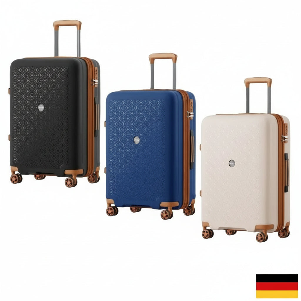 Choix de cabine de 20 pouces (55 cm x 40 cm x 20 cm), 24 pouces (65 cm x 44 cm x 29 cm) ou 28 pouces (76 cm x 52 cm x 32 cm) -idéal pour les voyages courts, les voyages de week-end ou les séjours de longue durée. Toutes les tailles sont extrêmement légères (à partir de 2.8 kg) et adaptées aux avions.
