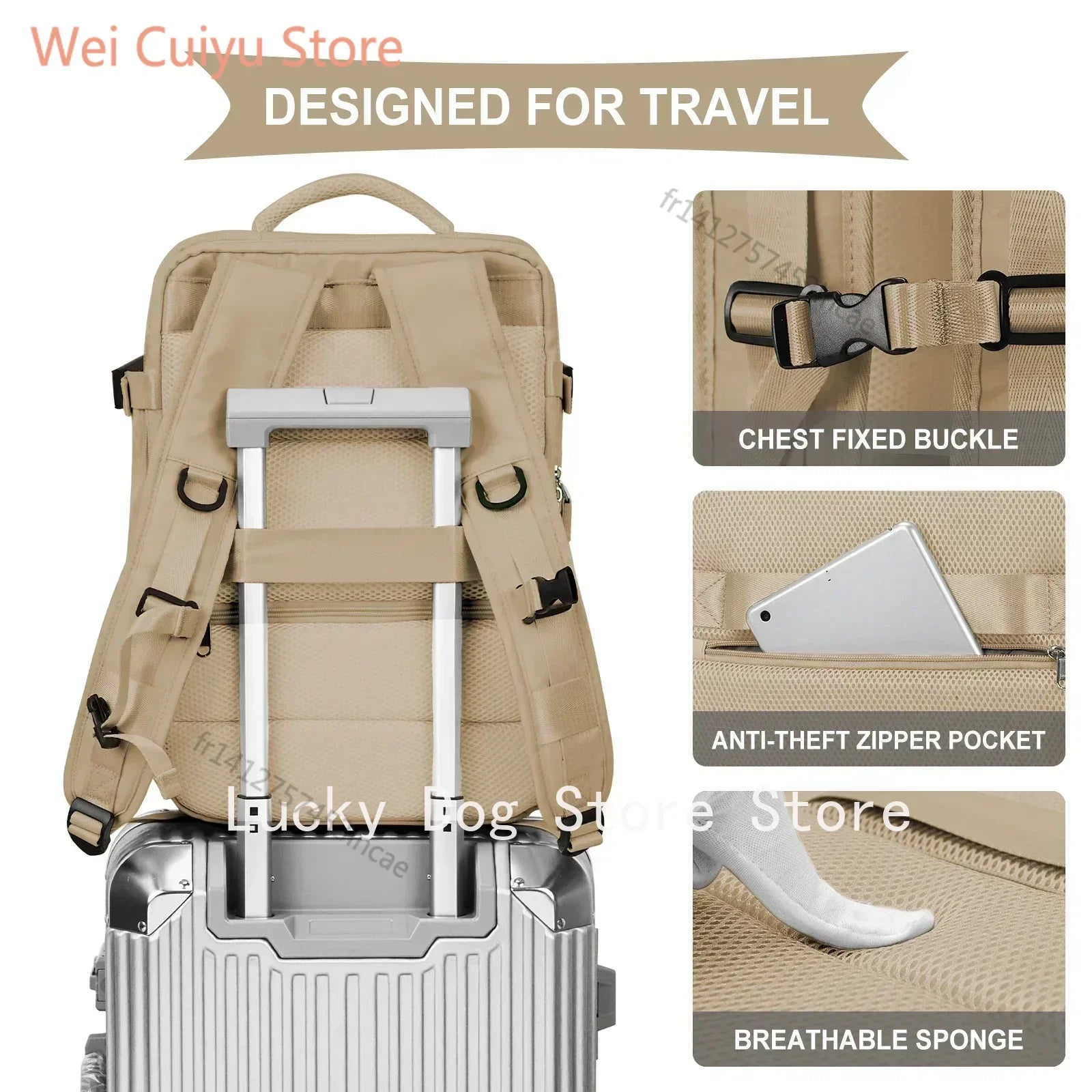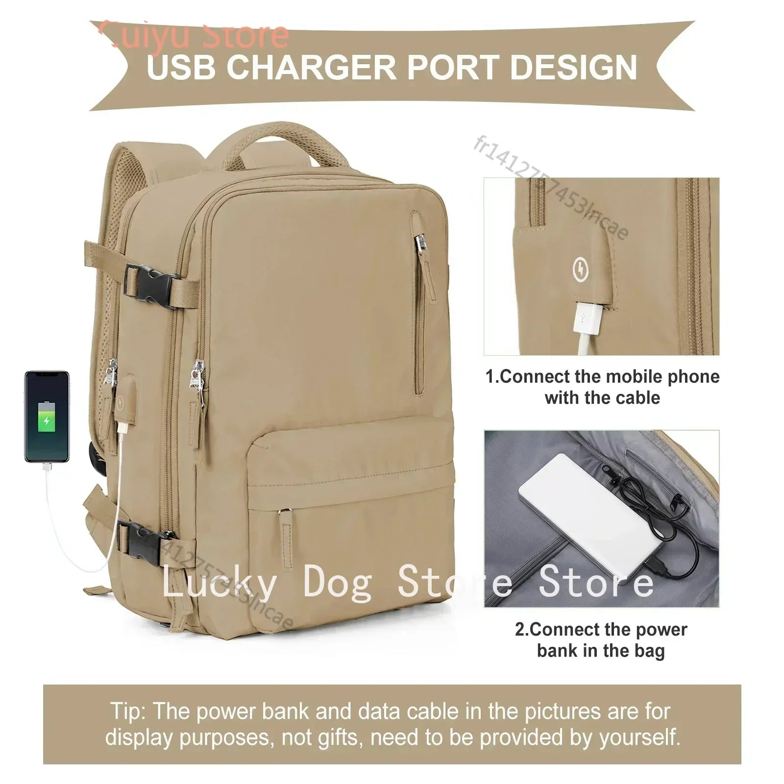 La couleur de ce sac à dos de voyage peut légèrement différer des images en raison des variations de réglage des couleurs et de la luminosité des écrans. Les dimensions peuvent également varier légèrement en raison de la mesure manuelle.